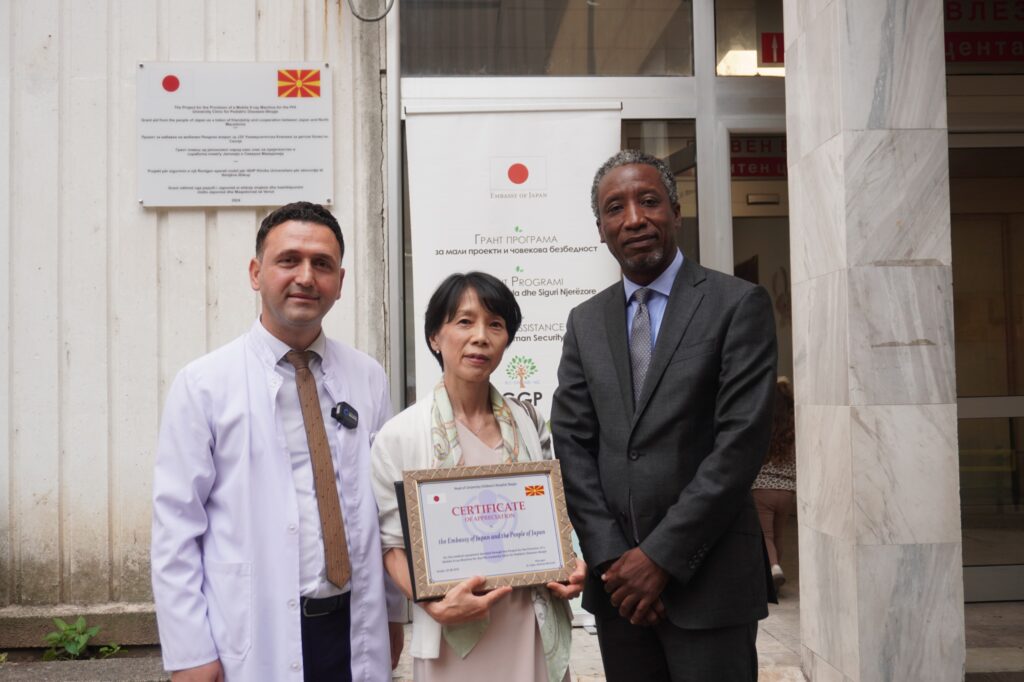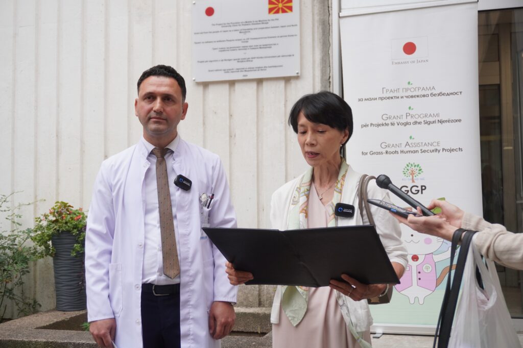 Drejtori Dr. spec. Rexhep Memedi, në emër të tij dhe në emër të të gjithë stafit të Klinikës Universitare për sëmundje të fëmijëve – shprehu mirënjohje të madhe për Ambasadën e Japonisë, për Ambasadoren e Japonisë – shkëlqesia e saj znj. Setsuko Kawahara – dhe për popullin japonez – i cili edhe një herë, me këtë donacion të rëndësishëm dhe të vlefshëm të një Rentgen aparati funksional për pacientët neonatalë dhe pediatrikë, tregoi humanizëm të madh ndaj fëmijëve, pacientëve tanë, por edhe ndaj qytetarëve të vendit tonë.